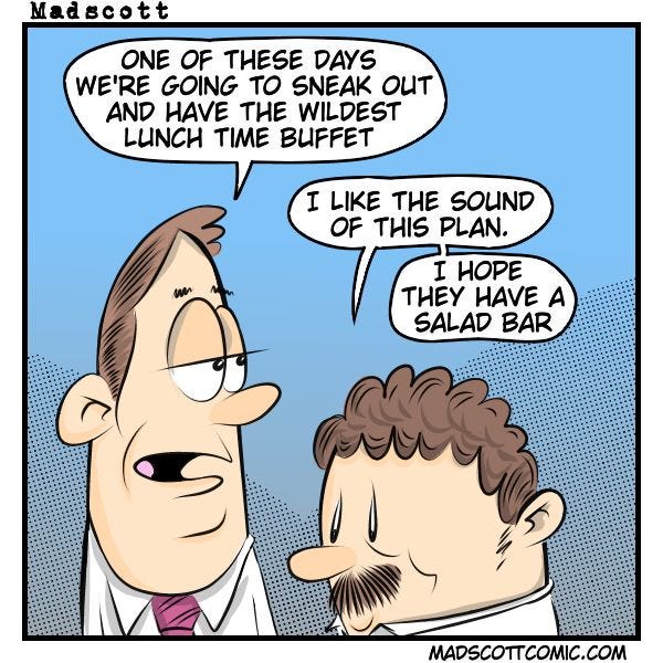 This one is as fine of an example of my adult life as I can get. The older I get the more I like a good cafe breakfast and a lunch buffet. For dinner I would go back and have a second breakfast.